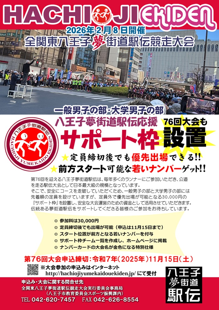 - 特徴71部(一般男子)・2部(大学男子)には「サポート枠」を設置